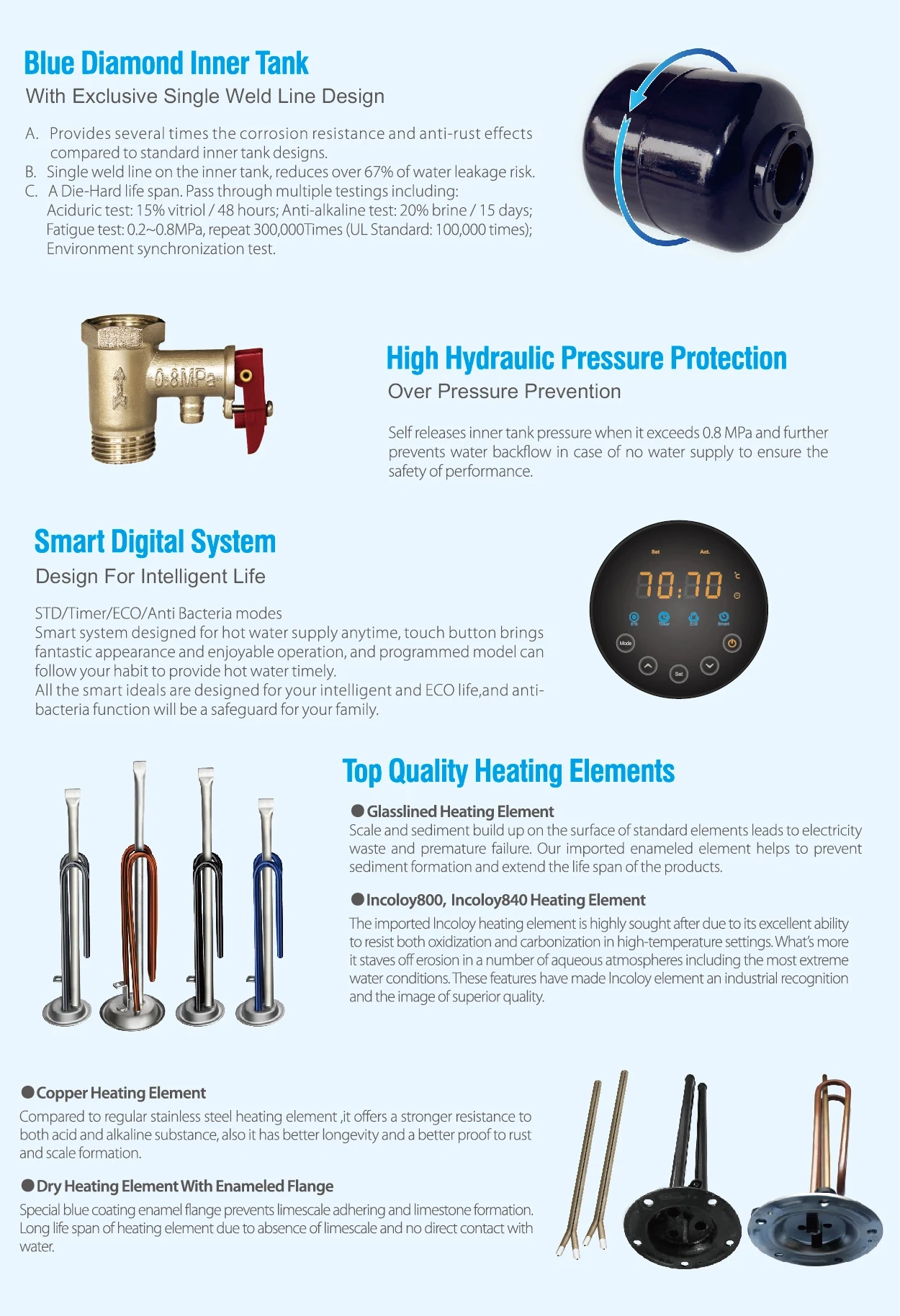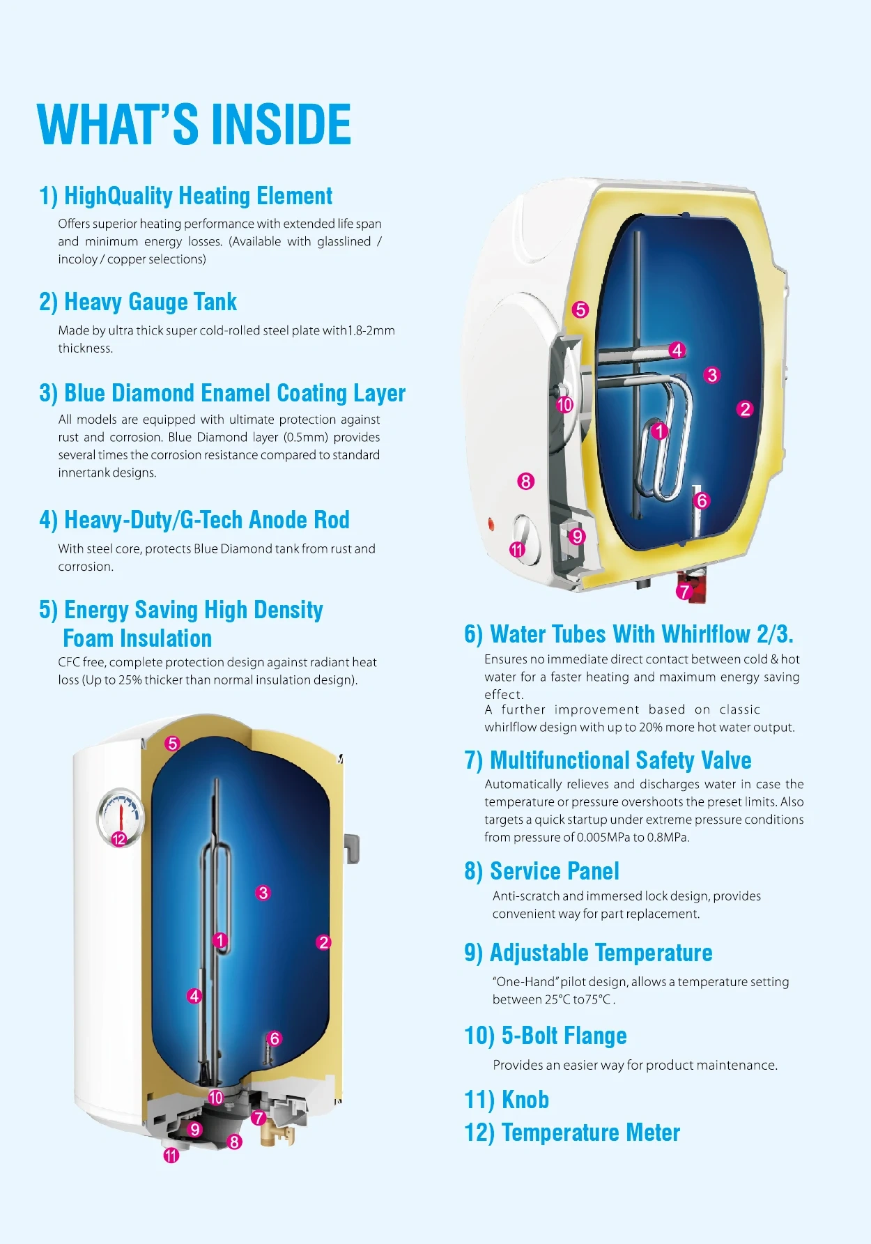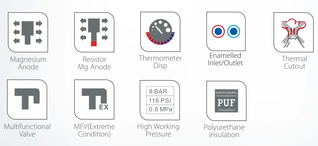 Zero Maintenance Design: Self-cleaning magnesium anode and scale-resistant glass lining extend service life beyond 12 years.